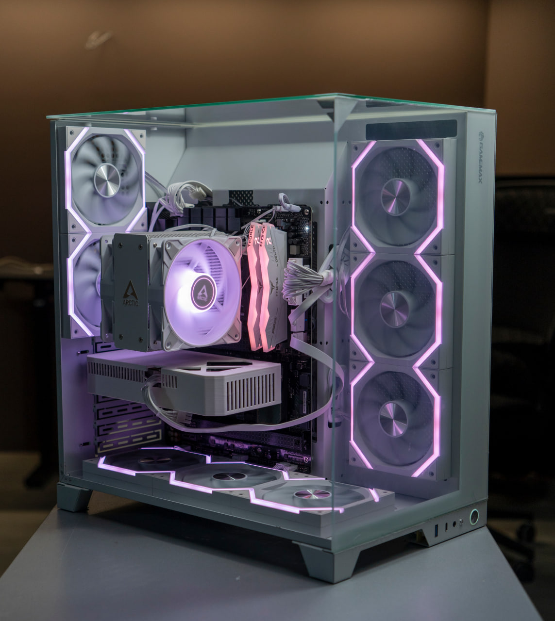 Блок питания 650W Gold (Huntkey Atlas) обеспечивает стабильную работу, корпус GameMax Infinity Pro White — стиль и отличный airflow.
